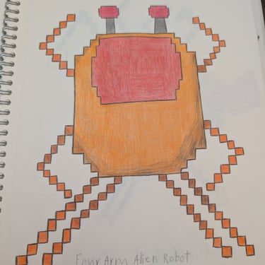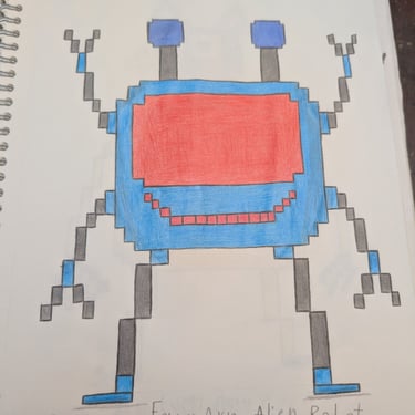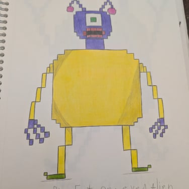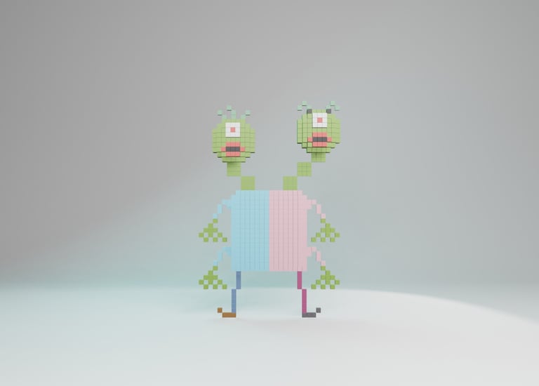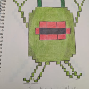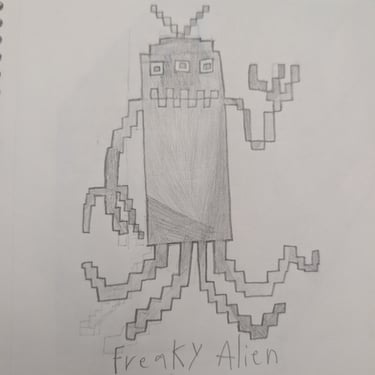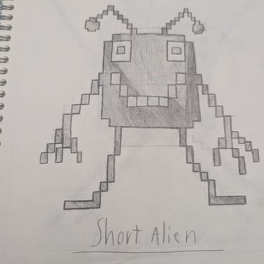 He drew alien after alien -20 of them - sketching and re-sketching until every one was exactly right. He built them from scratch as voxel 2.5D characters in Blender. He learned the UEFN toolset through community tutorials, hours of trial and error, and more patience than most people have in a lifetime. I told him at the start: " This is going to be the most frustrating and rewarding thing you've ever done." He didn't flinch.